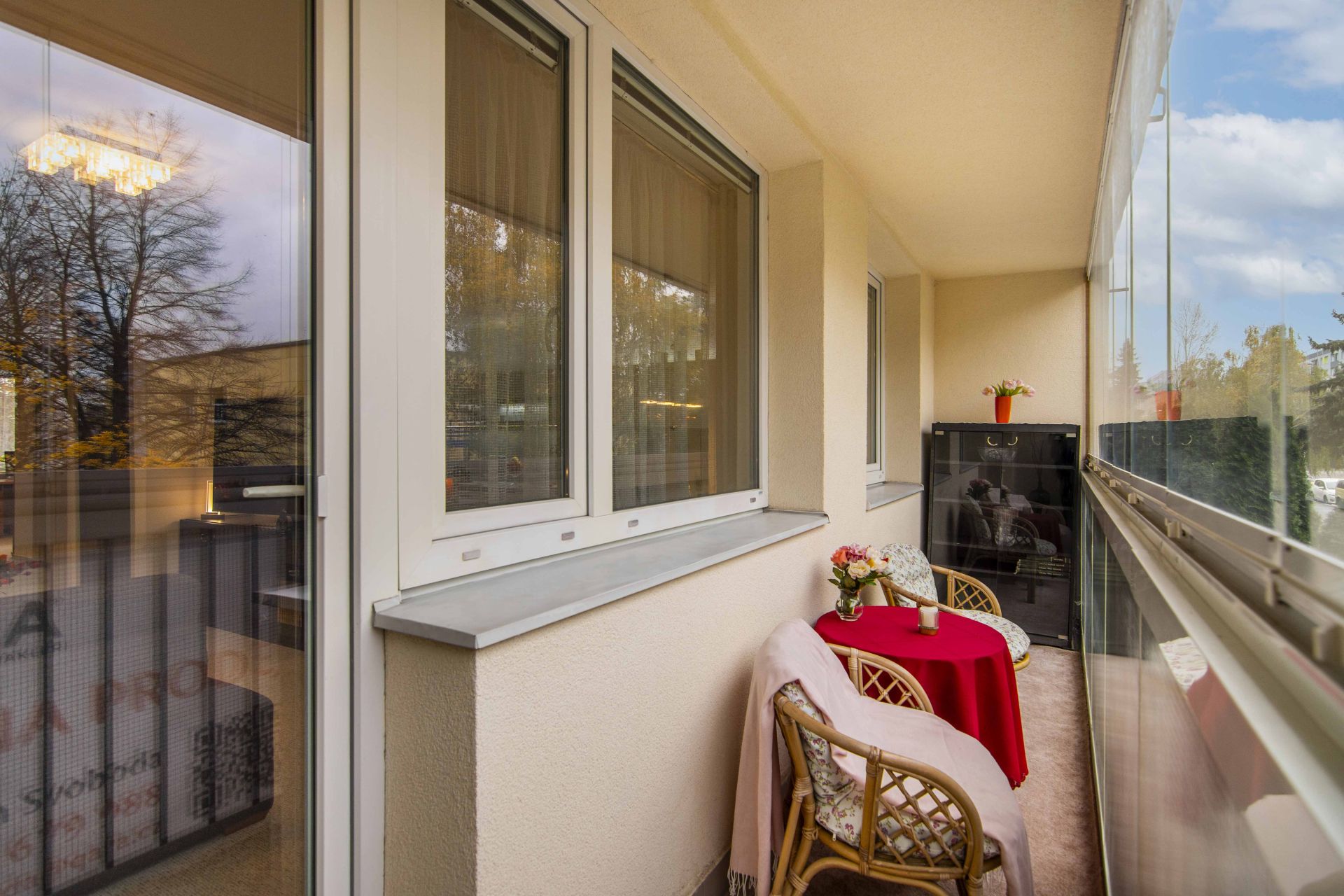 Z obývacího pokoje je vstup na zasklený balkon, ideální pro odpočinek po dlouhém dni a pohledem na zapadající slunce. Pokud máte rádi větší návštěvy či rodinné oslavy, je příjemně propojený s prosvětlenou halou.
