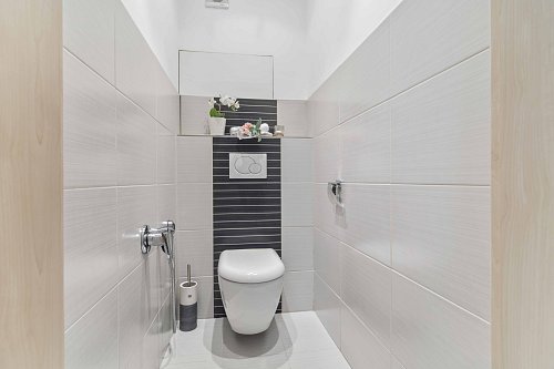 K bytu dále patří světlý dětský pokoj, inspirativní pracovna, která může sloužit jako druhý dětský pokoj, další pokoj, který nyní slouží jako komora a spíž, ale je možné v něm vybudovat další ložnici, jedinečná prostorná koupelna s vanou i sprchovým koutem, samostatná toaleta, předsíň a již zmiňovaná hala. Ženy si zamilují důmyslně vymyšlenou šatnu s dostatkem úložného prostoru.